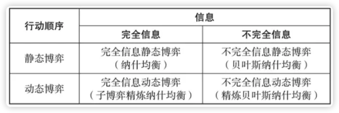 将上面说到4种博弈类型进行组合,我们可以得到: