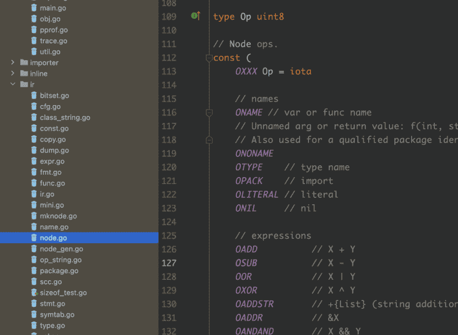 Go语言编译器有关的代码主要位于src/cmd/compile/internal目录下,在后面分析中给出的文件路径均默认位于该目录中。
