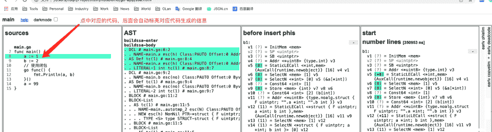Go语言提供了强有力的工具查看SSA初始及其后续优化阶段生成的代码片段,可以通过在编译时指定GOSSAFUNC=main实现,使用如下: