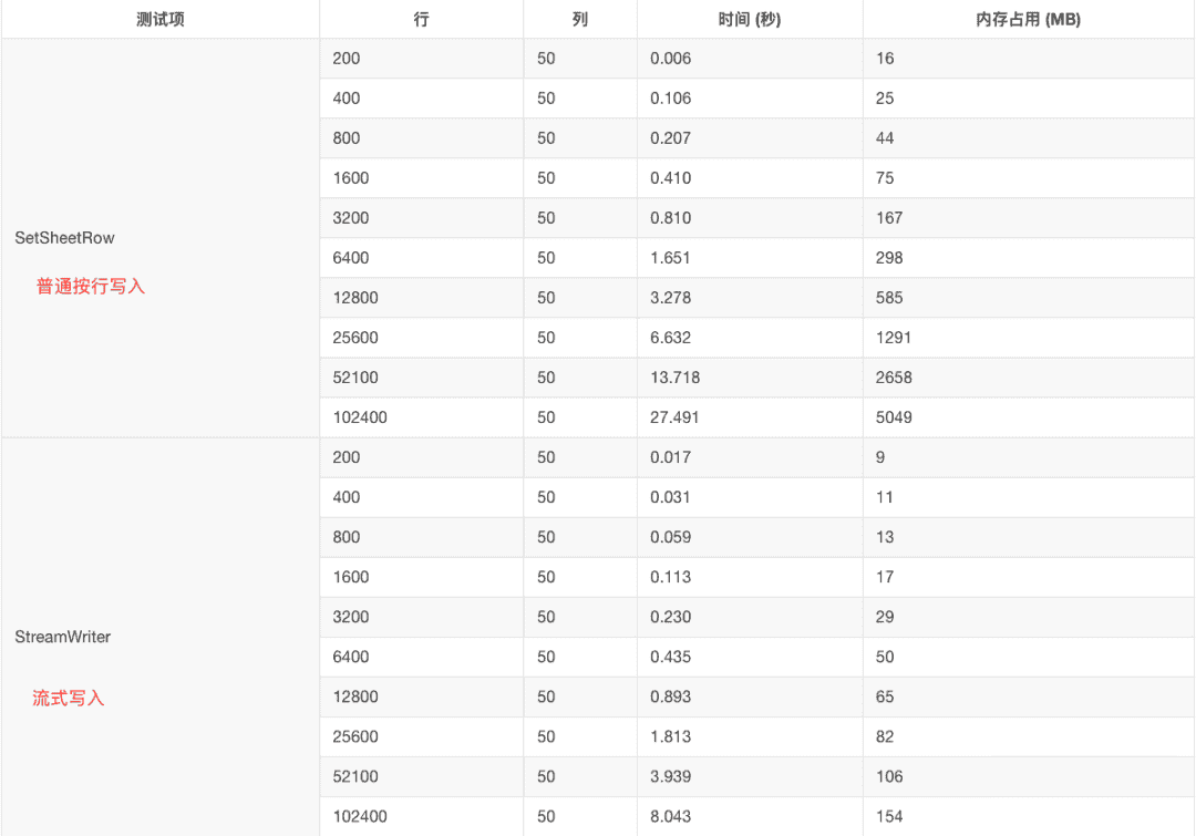 当写入表格的内容很大时,推荐使用流式写入,可以有效防止内存溢出。