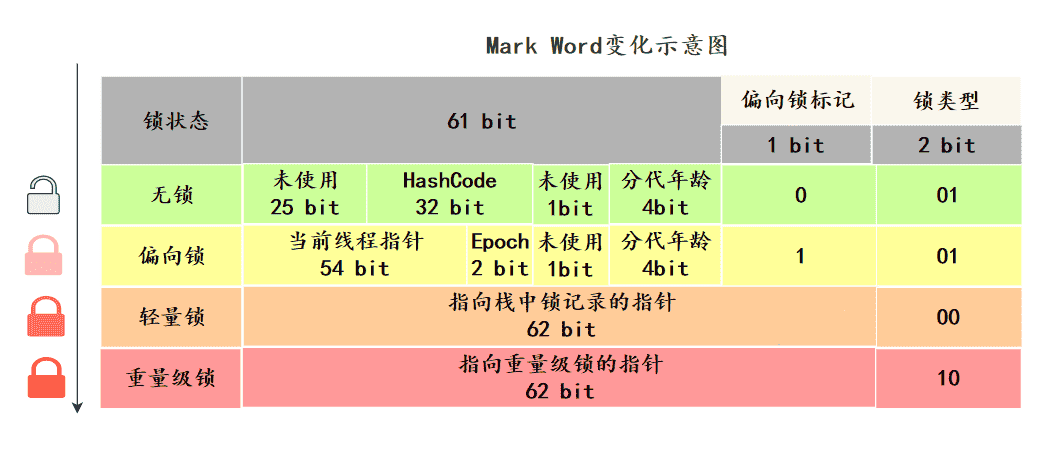 在Java中,锁共有4种状态,级别从低到高依次为:无状态锁,偏向锁,轻量级锁和重量级锁状态,这几个状态会随着竞争情况逐渐升级。锁可以升级但不能降级。