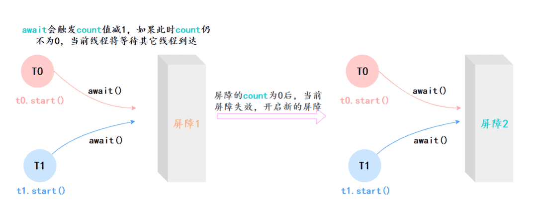 notifyAll():不同于在共享变量上调用 notify() 函数会唤醒被阻塞到该共享变量上的一个线程,notifyAll()方法则会唤醒所有在该共享变量上由于调用 wait 系列方法而被挂起的线程。