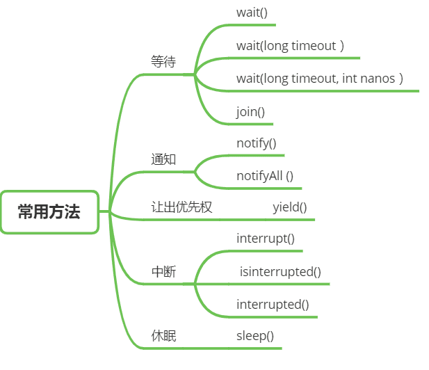 void interrupt() :中断线程,例如,当线程A运行时,线程B可以调用钱程interrupt() 方法来设置线程的中断标志为true 并立即返回。设置标志仅仅是设置标志, 线程A实际并没有被中断, 会继续往下执行。