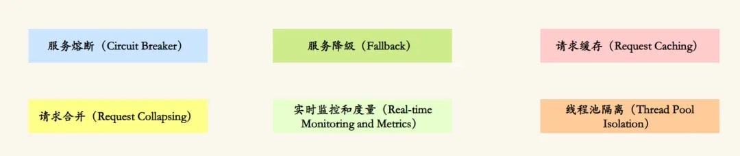 - 限流和降级:用于防止微服务过载,对请求进行限制和降级处理。常见的实现包括: