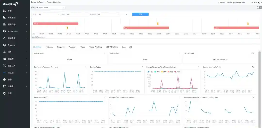 SkyWalking:Apache SkyWalking 是一款开源的应用性能监控与分析系统,提供了对 Java、.NET 和 Node.js 等语言的支持。它可以与 Spring Cloud Sleuth 集成,将追踪数据发送到 SkyWalking 服务器进行可视化展示和分析。