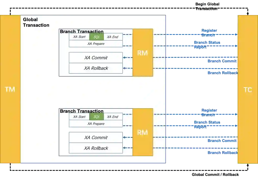 - 全局事务提交或回滚:事务协调器根据参与者反馈的结果进行判断,如果所有参与者的本地事务都执行成功,事务协调器发送真正的提交请求给参与者,参与者执行最终的提交操作;如果有任何一个参与者的本地事务执行失败,事务协调器发送回滚请求给参与者,参与者执行回滚操作。