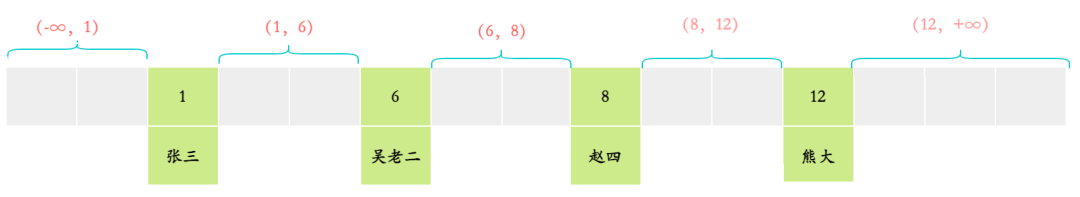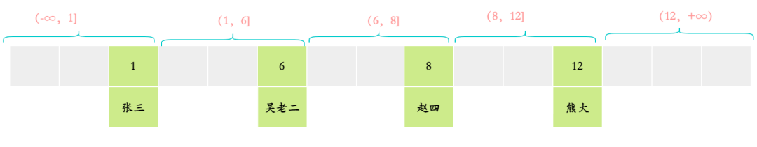 - 范围路由:选取有序的数据列 (例如,整形、时间戳等) 作为路由的条件,不同分段分散到不同的数据库表中。