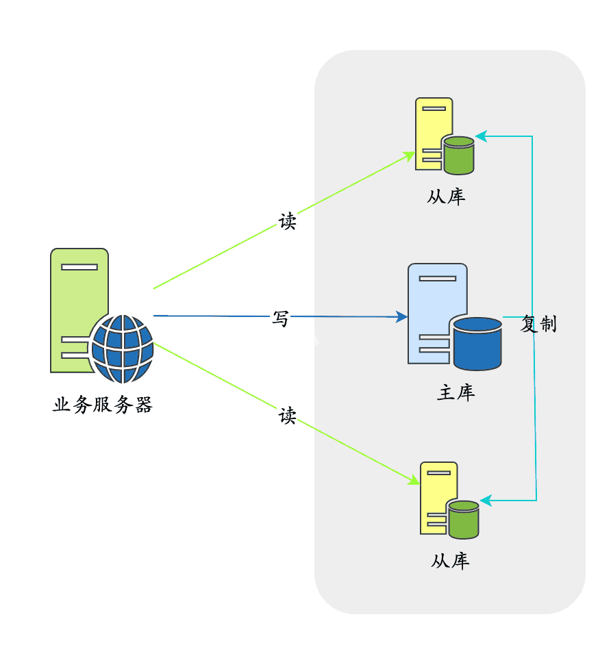 - 关键业务读写操作全部指向主机,非关键业务采用读写分离