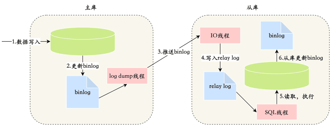- slave再开启一个sql线程读取relay log事件并在slave执行,完成同步