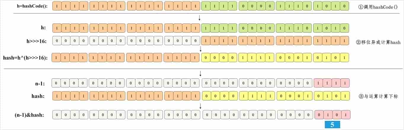 首先进行哈希值的扰动,获取一个新的哈希值。