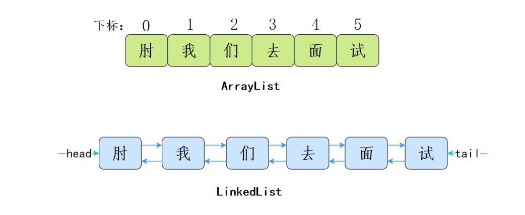 (4) 内存占用,ArrayList基于数组,是一块连续的内存空间,LinkedList基于链表,内存空间不连续,它们在空间占用上都有一些额外的消耗: