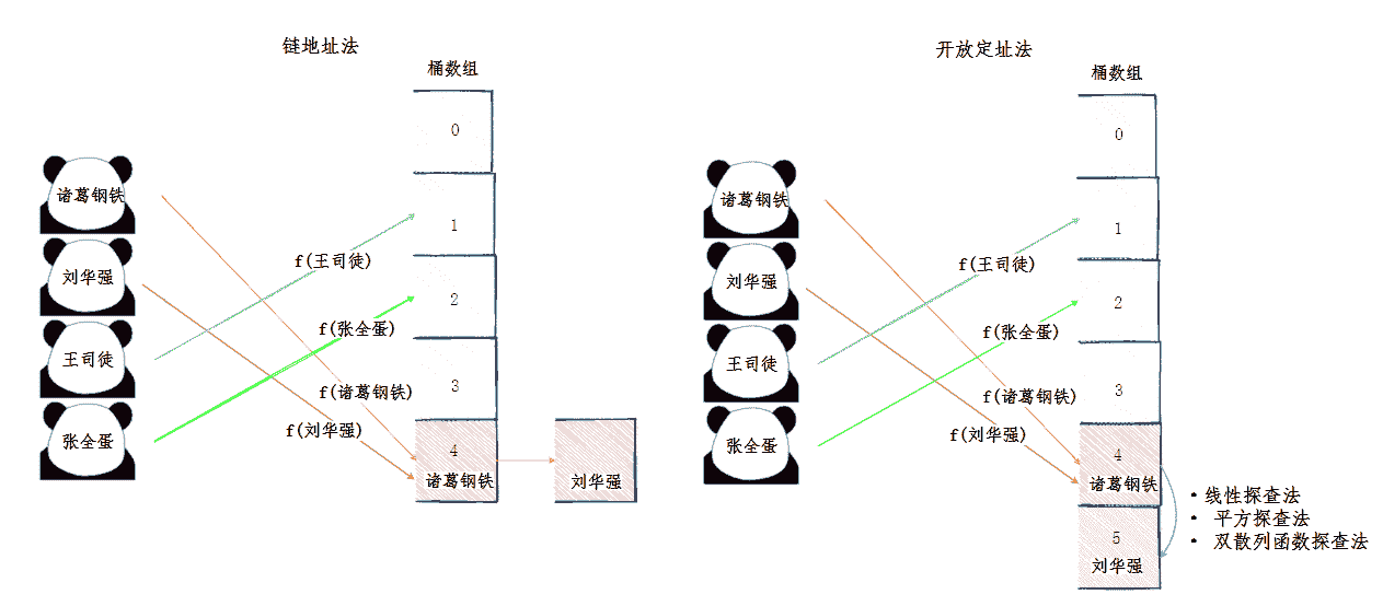 - 如果发生冲突,从冲突的位置拉一个链表,插入冲突的元素