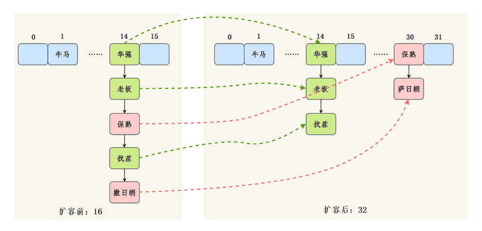 - 多线程下扩容死循环。JDK1.7 中的 HashMap 使用头插法插入元素,在多线程的环境下,扩容的时候有可能导致环形链表的出现,形成死循环。因此,JDK1.8 使用尾插法插入元素,在扩容时会保持链表元素原本的顺序,不会出现环形链表的问题。