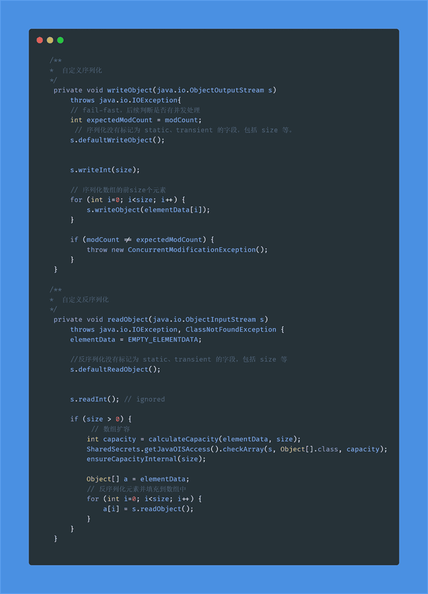 # 4.ArrayList怎么序列化的知道吗,为什么用transient修饰数组
