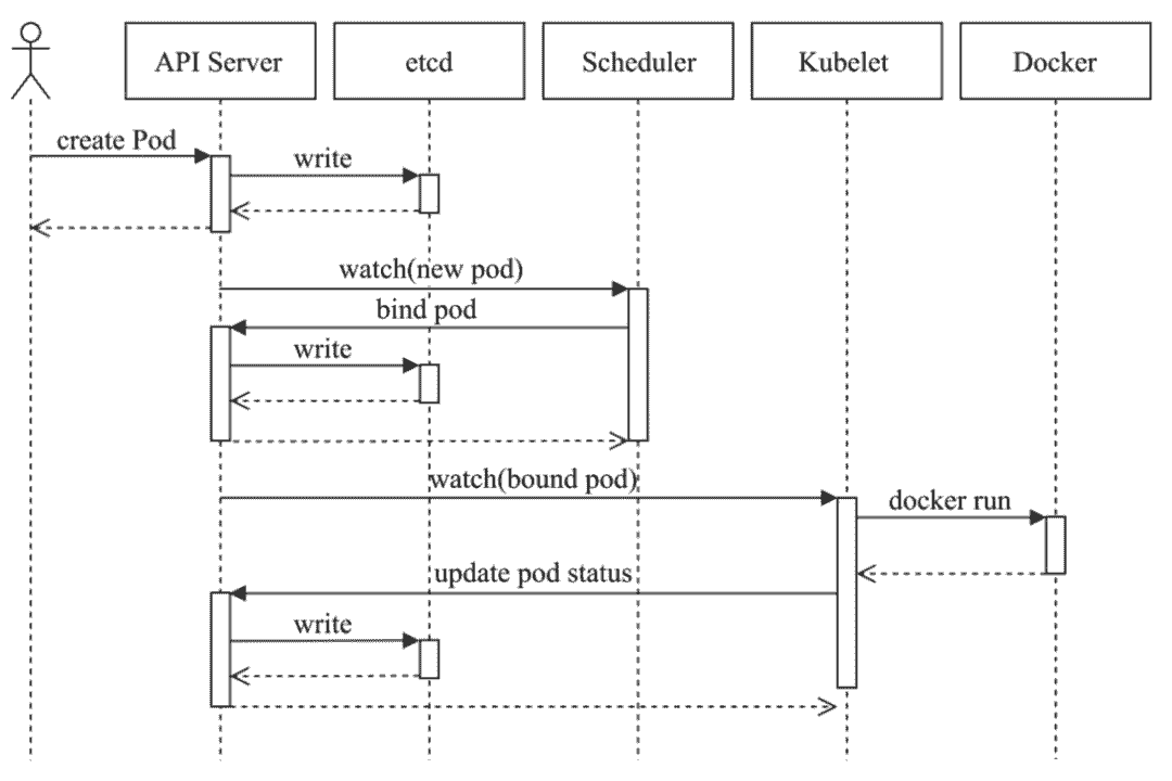 etcd确认写入操作成功完成后,API Server将确认信息发送至相关的kubelet,事件将通过它被接受。