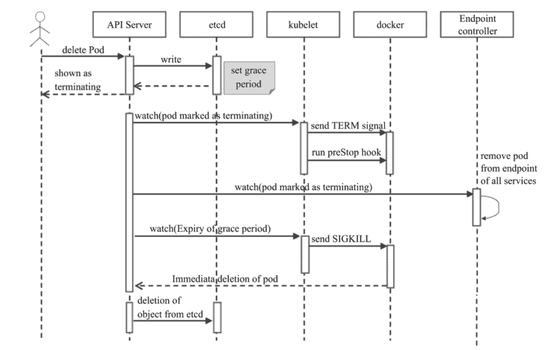 Pod对象的命令。 API Server中的Pod对象会随着时间的推移而更新,在宽限期内(默认为30秒)Pod被视为dead。- 将
