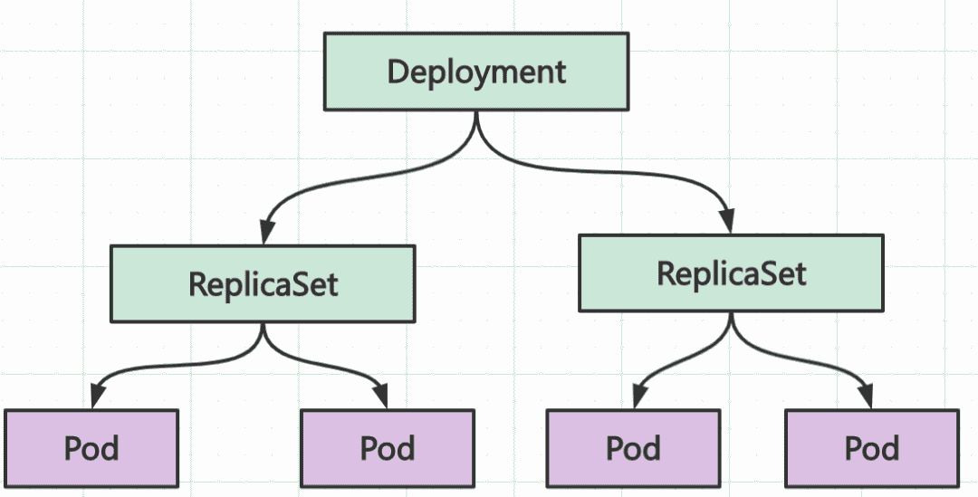 Deployment、ReplicaSet和Pod的关系如下图所示