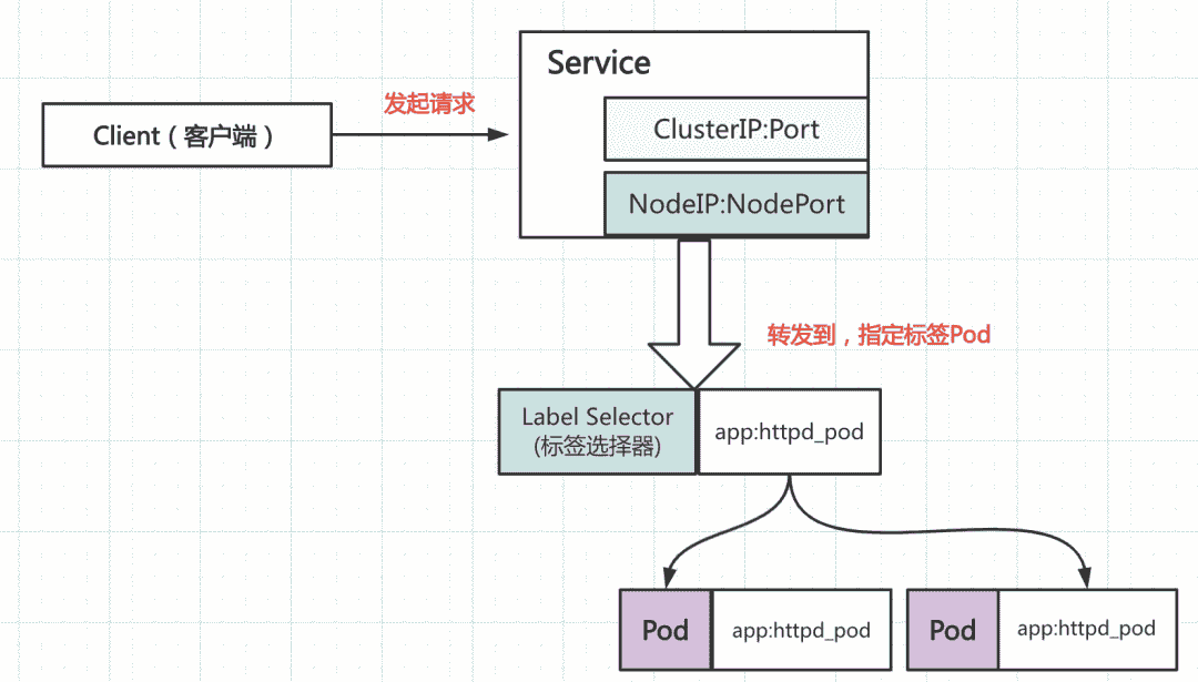 Service资源基于标签选择器将一组Pod定义成一个逻辑组合,并通过自己的IP地址和端口调度代理请求至组内的Pod对象之上,如下图所示: