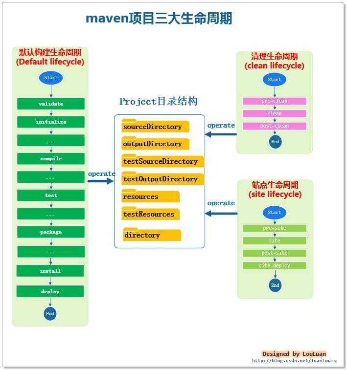 - 站点管理生命周期(Site Lifecycle) :向我们创建一个项目时,我们有时候需要提供一个站点,来介绍这个项目的信息,如项目介绍,项目进度状态、项目组成成员,版本控制信息,项目javadoc索引信息等等。站点管理生命周期定义了站点管理过程的各个阶段。