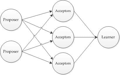 Paxos将系统中的角色分为提议者 (Proposer),决策者 (Acceptor),和最终决策学习者 (Learner):