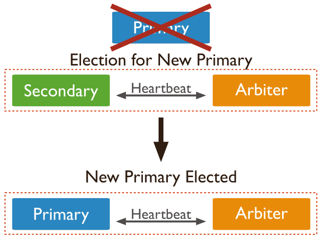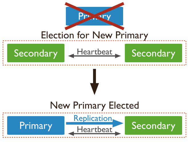 当主节点宕机时,将会选择从节点成为主,主节点修复后,将其加入到现有的复制集群中即可。