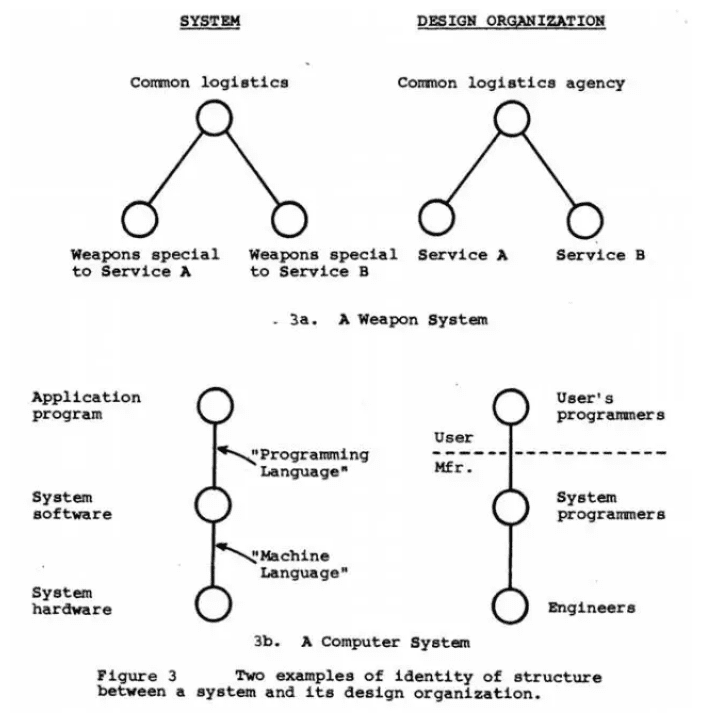 中文直译大概的意思就是:设计系统的组织,其产生的设计等同于组织之内、组织之间的沟通结构。