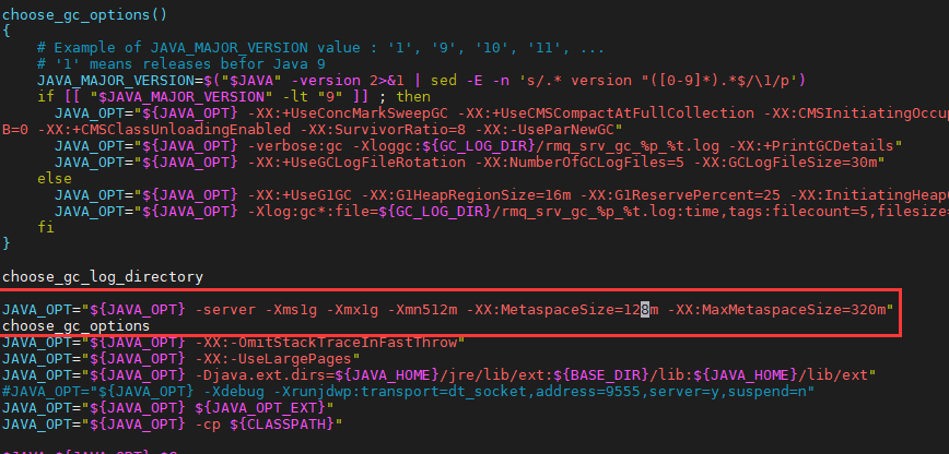 JAVA_OPT="${JAVA_OPT} -server -Xms1g -Xmx1g -Xmn512m -XX:MetaspaceSize=128m -XX:MaxMetaspaceSize=320m"