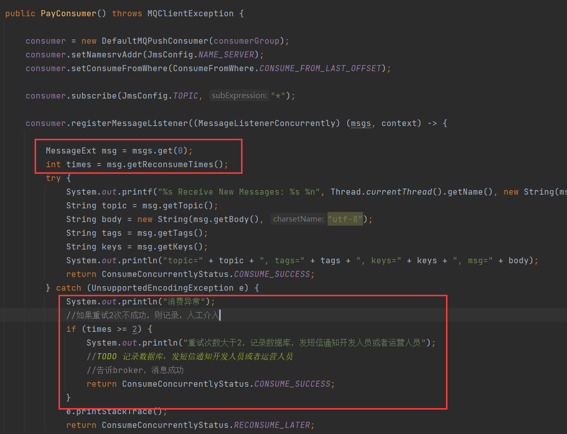 return ConsumeConcurrentlyStatus.RECONSUME_LATER;