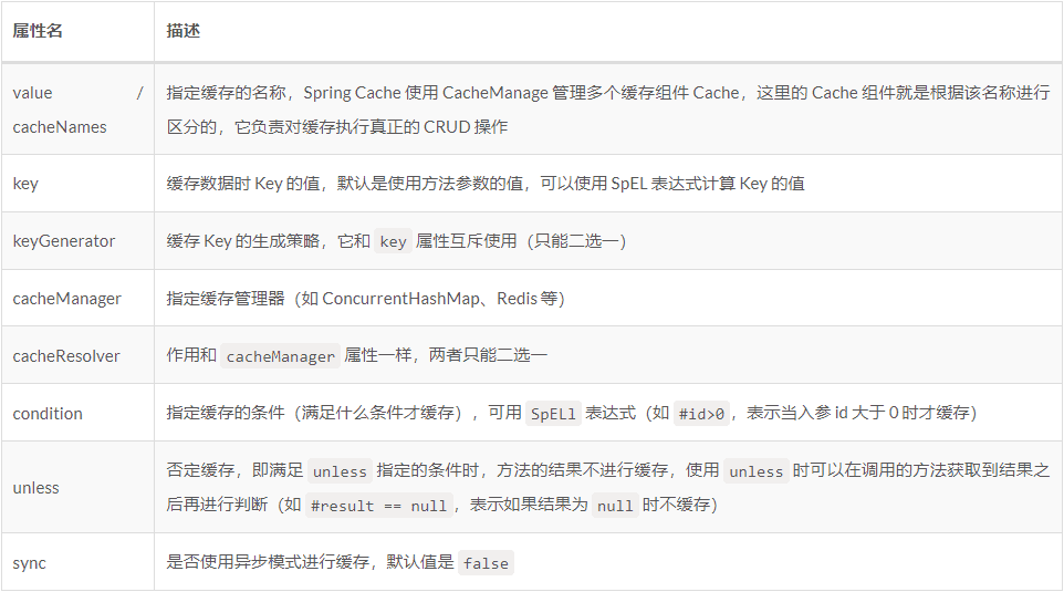 该注解可以将方法运行的结果进行缓存,在缓存时效内再次调用该方法时不会调用方法本身,而是直接从缓存获取结果并返回给调用方。