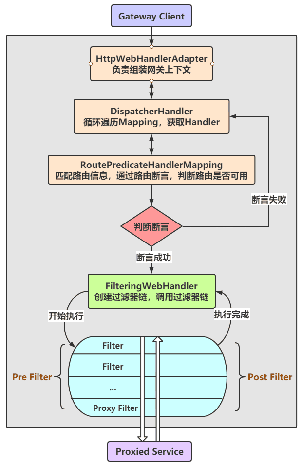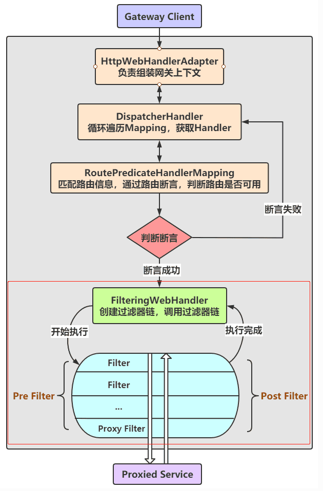 - 如果断言成功,由 FilteringWebHandler 创建过滤器链并调用