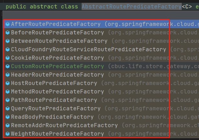 我们看下抽象的断言工厂有哪些自实现的类!其中是不是有 PathRoutePredicateFactory,没错,就是你想的那样!有没有一种拨开雨雾见青天的感觉!原来我们配置文件的 key 是以类名的前缀声明的,也就是说断言工厂类的格式必须是:自定义名称+ RoutePredicateFactory 为后缀,然后在配置文件中声明。这样子举一反三,我们自然而然的就清楚了 - Before 的作用,该作用便是:限制请求时间在 xxx 之前。