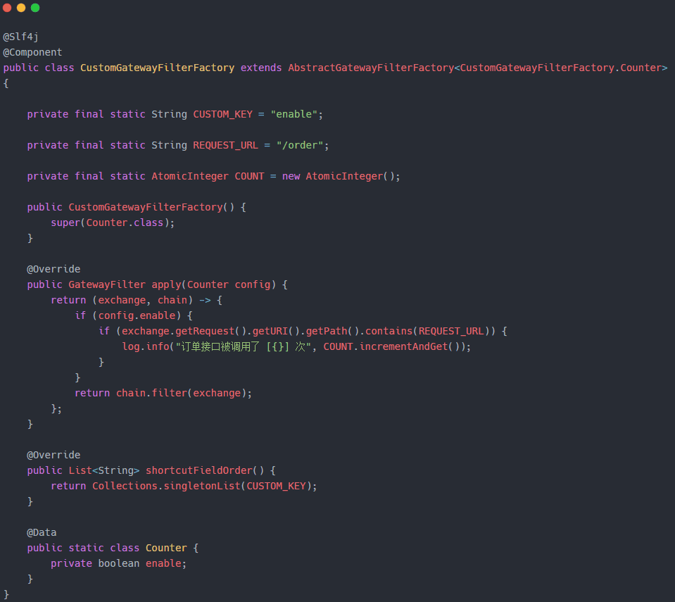 对于全局过滤器,我们不需要在配置文件中配置,因为是作用于所有路由