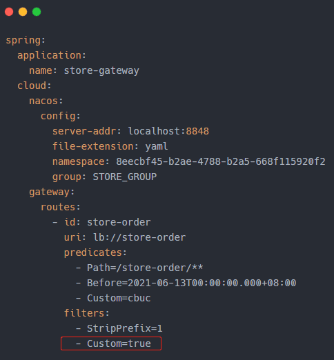 既然要用到网关,那我们上面创建的服务之一 store-gateway 就派上用场了!怎么用?我们在配置文件做个简单的修改: