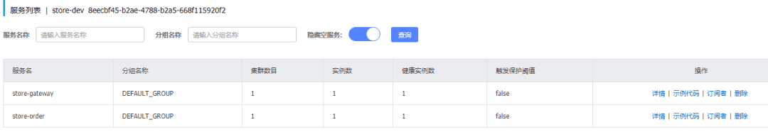 启动两个服务后,我们可以在 Nacos 的控制台服务列表中看到两个服务: