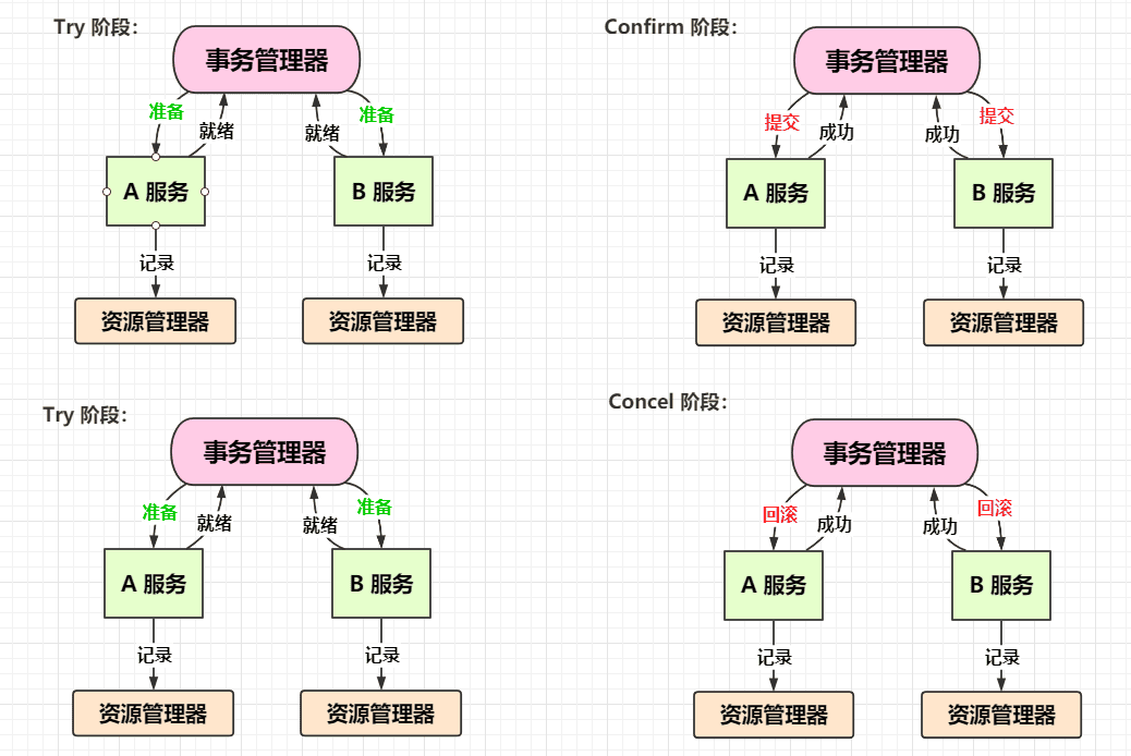 取消 Try 阶段预留的业务资源。通常情况下,采用 TCC 则认为 Cancel 阶段也是一定能成功的,若 Cancel 阶段真的出错了,也要引入重试机制或人工处理