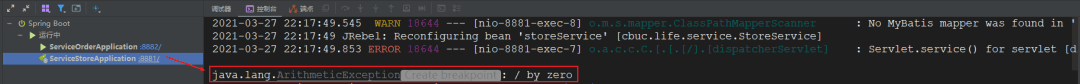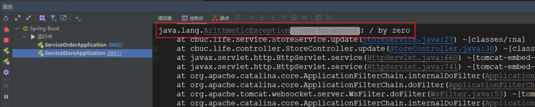 我们继续发送下单请求,可以看到库存服务已经抛出了异常