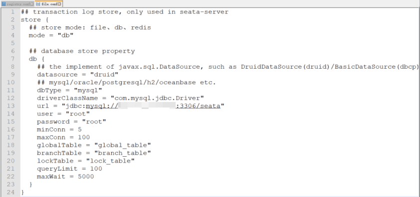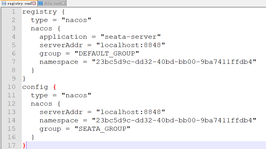 conf目录编辑registry.conf和file.conf两个文件,编辑后内容如下: