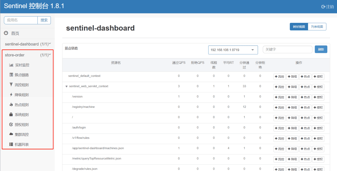 4、启动sentinel应用,可以看到我们在nacos中配置的限流规则