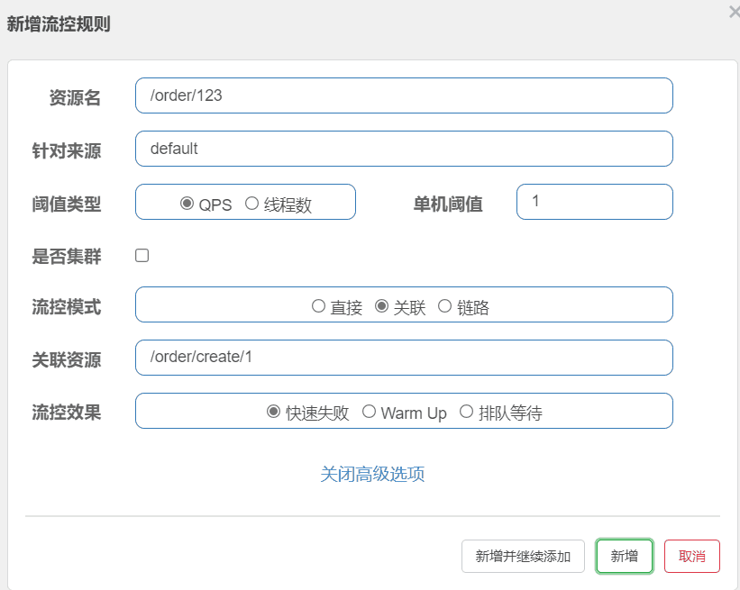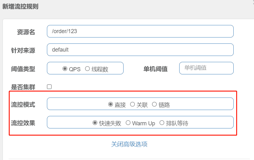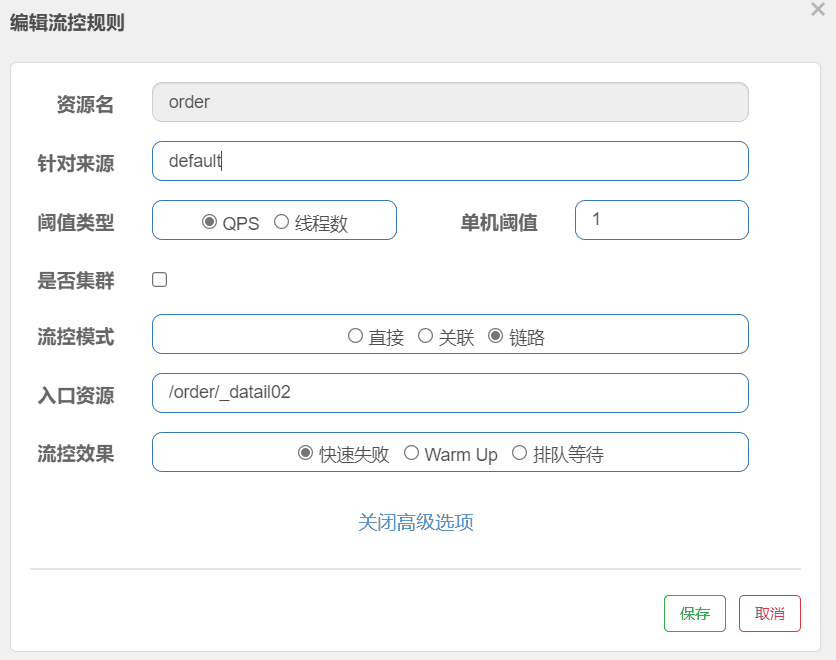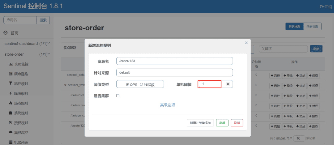 然后我们做个简单的流控设置: