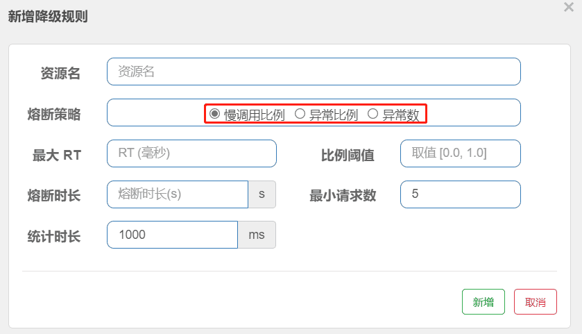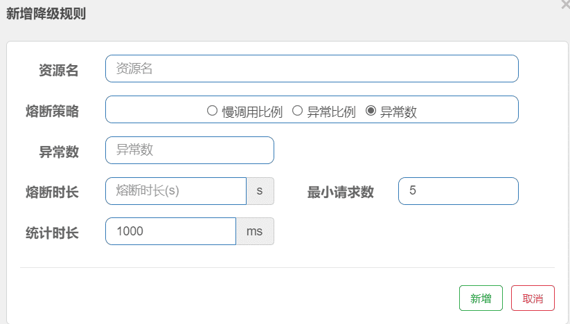 | exceptionsToIgnore | 指定排除掉哪些异常。排除的异常不会计入异常统计,也不会进入fallback逻辑,而是原样抛出。 |