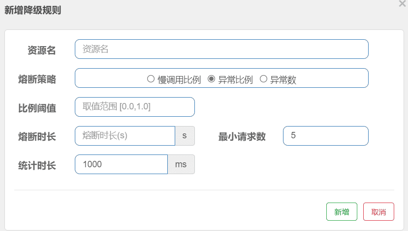 | fallback | 用于在抛出异常时候提供 fallback 处理逻辑。fallback 函数可以针对所有类型的异常(除了exceptionsToIgnore 中排除的异常),函数要求: 1. 返回类型与原方法一致 2. 参数类型需和原方法匹配 3. 默认需和原方法在同一个类中。若希望使用其他类的函数,可配置 fallbackClass,并指定对应的方法 |
