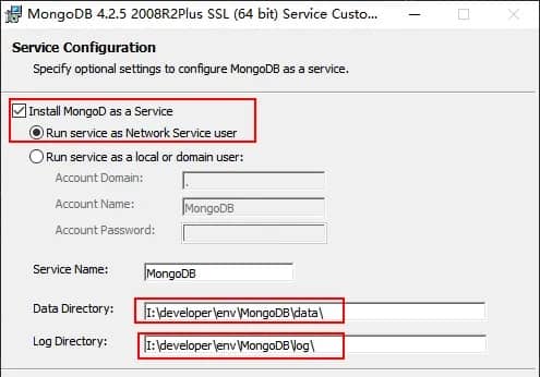 配置MongoDB,让MongoDB作为服务运行,并配置好数据目录和日志目录;